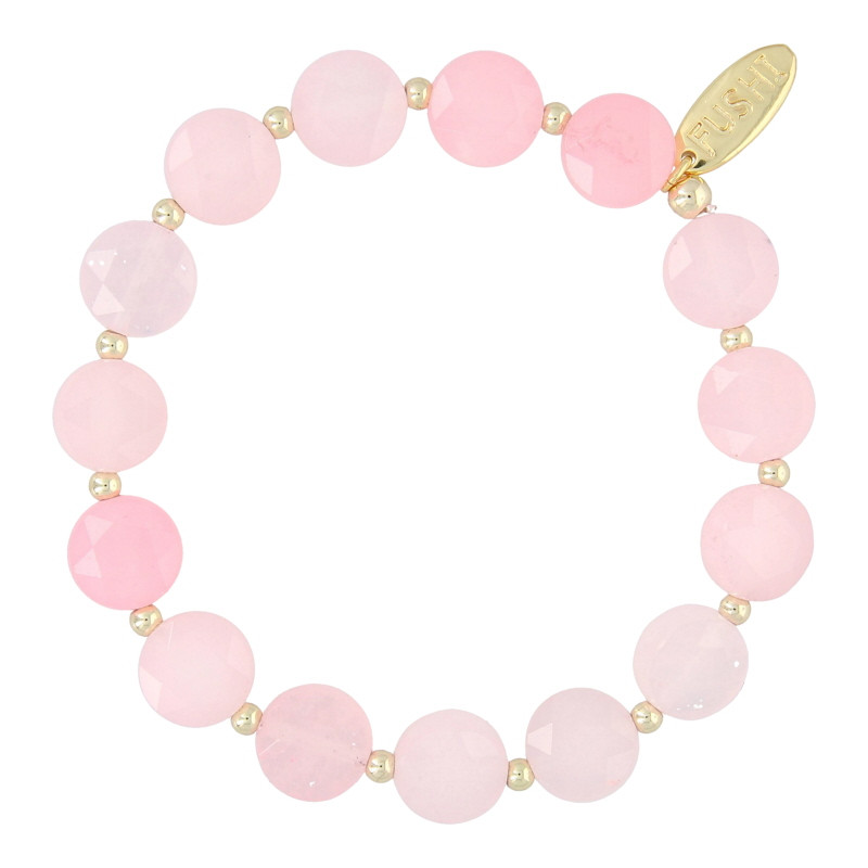 Armband halfedelsteen coin zachtroze 10mm