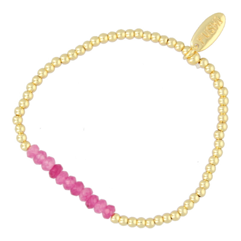 Armband 14krt met halfedelsteen dyed jade fuchsia