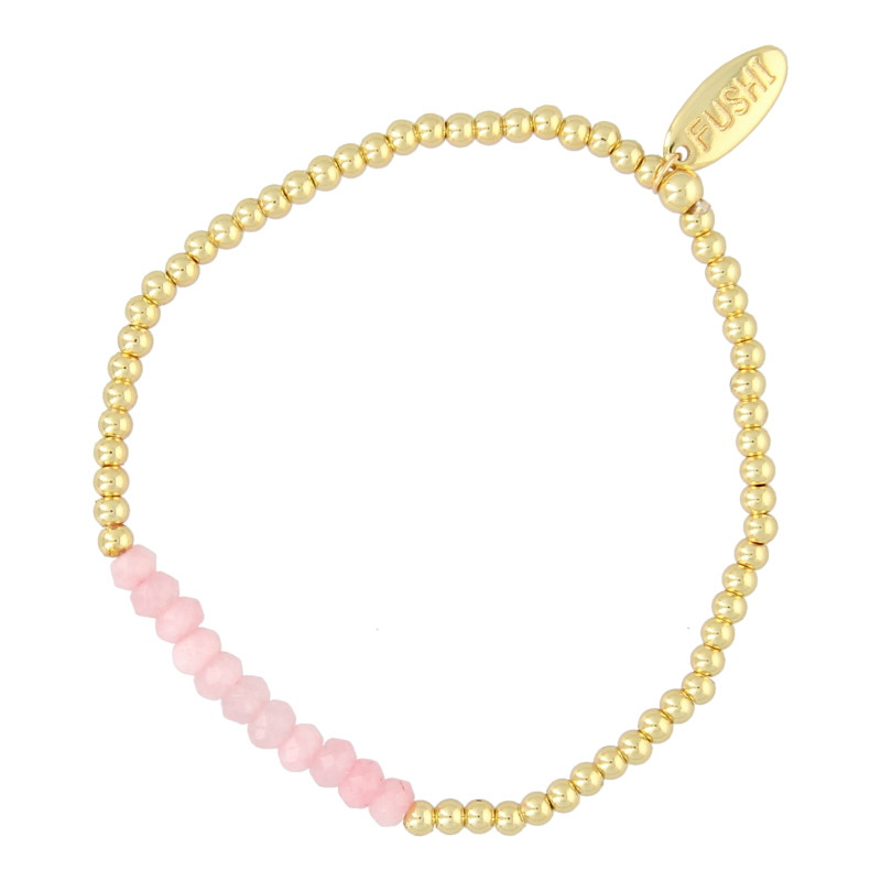 Armband 14krt met halfedelsteen dyed jade lichtroze
