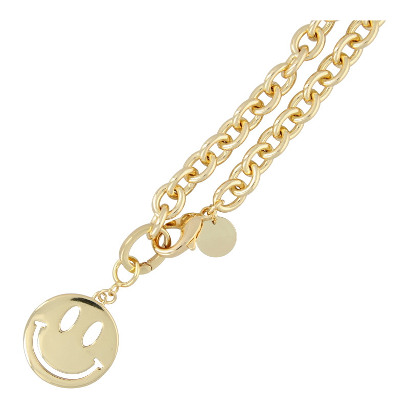 Ketting metaal schakel ovaal dik met metalen smiley bedel goud