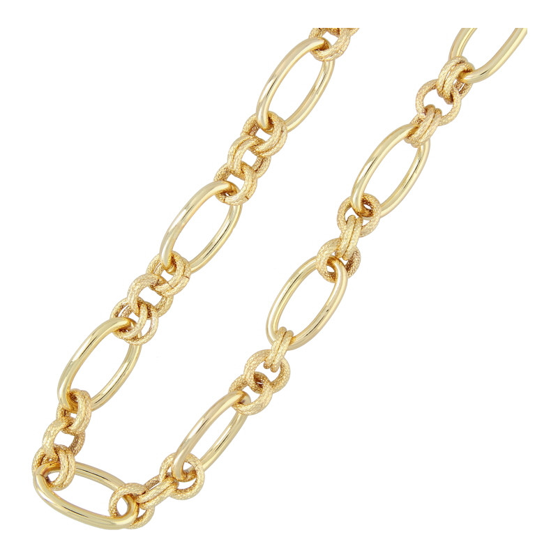 Ketting metaal schakel ovaal en dubbel rond bewerkt 18 karaat plating