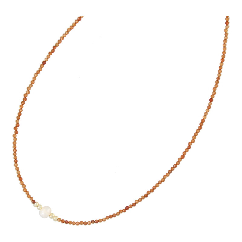 Ketting 2mm facet halfedelsteen cognac met zoetwaterparel