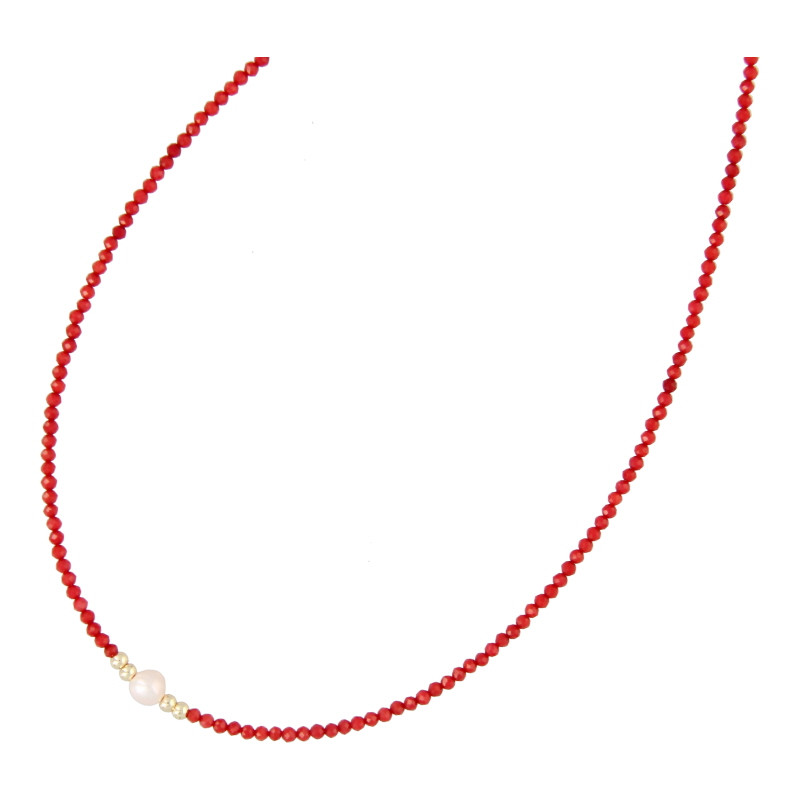 Materiaal: halfedelsteen koraal en zoetwaterparel