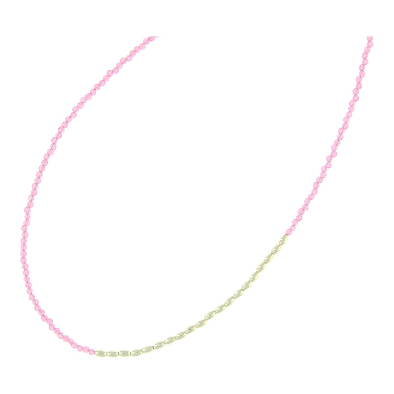 Ketting 2mm facet roze met rijst korrel goud kralen