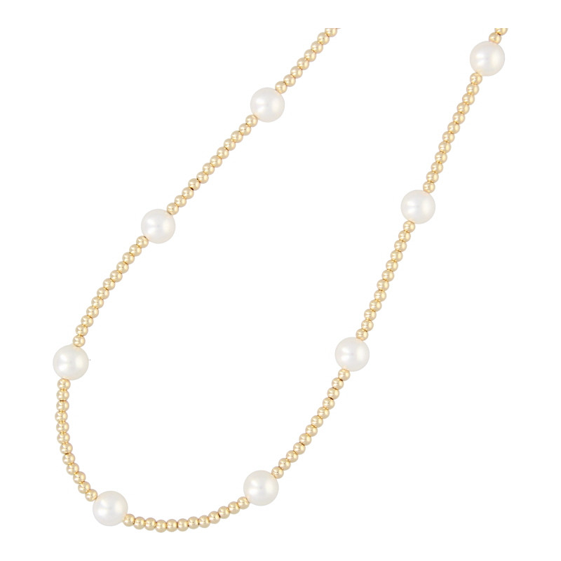 Ketting 3mm 14krt en ronde glasparels