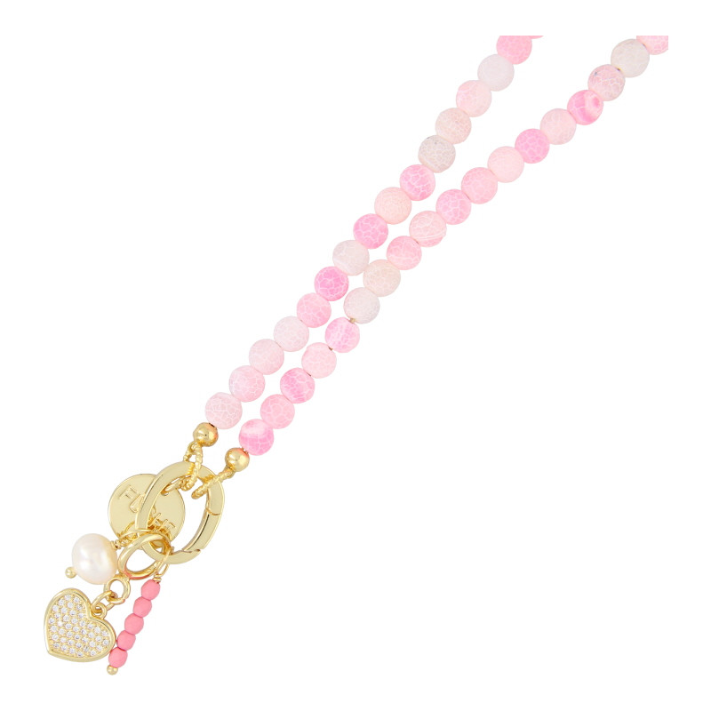 Ketting halfedelsteen mat agaat roze met clip en bedels
