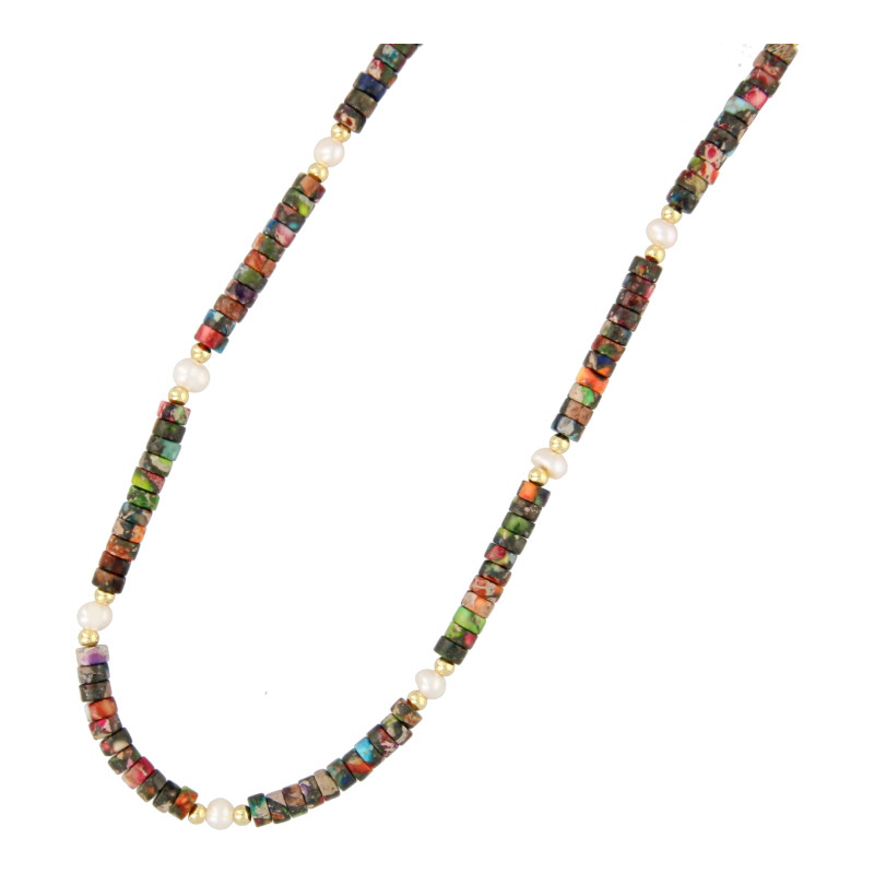 Materiaal: agaat mix met metaal en zoetwaterparel