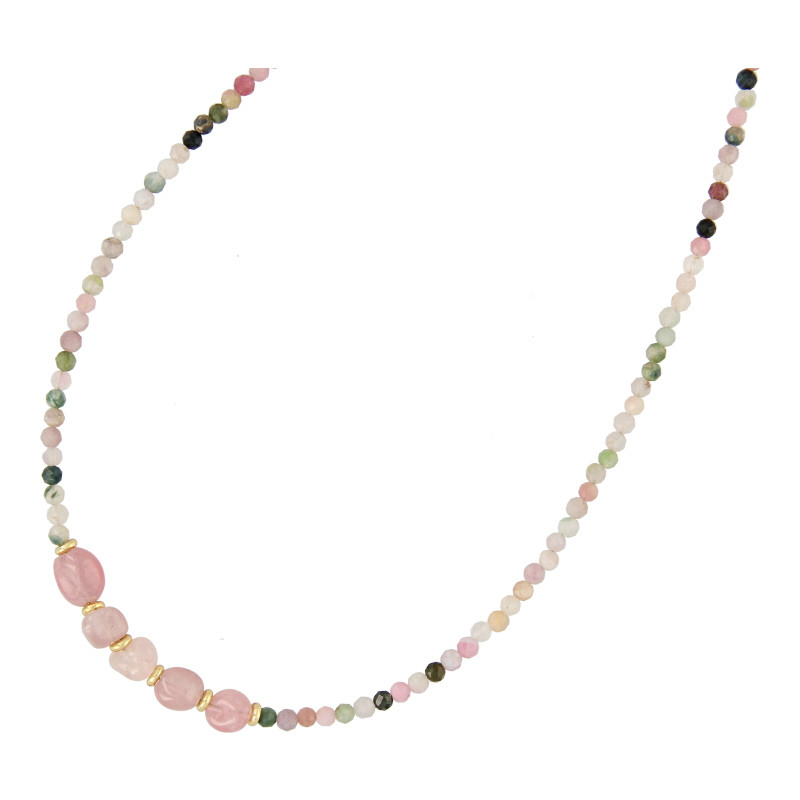 Ketting halfedelsteen mixed tourmarine en madagaskar rose