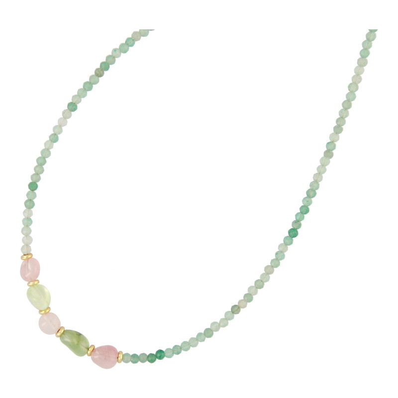 Ketting halfedelsteen green aventurine en madagaskar rose