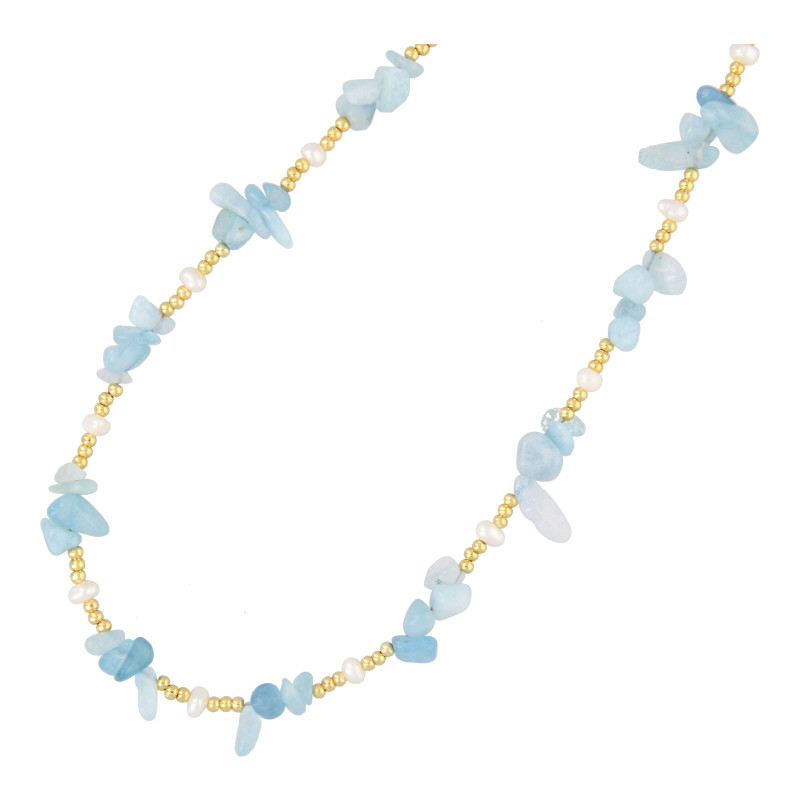 Materiaal: halfedelsteen, 14krt en zoetwaterparels