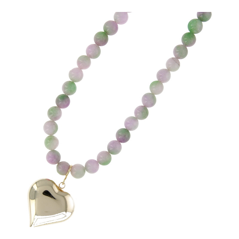 Ketting halfedelsteen 8mm dyed jade paarsgroen met hart