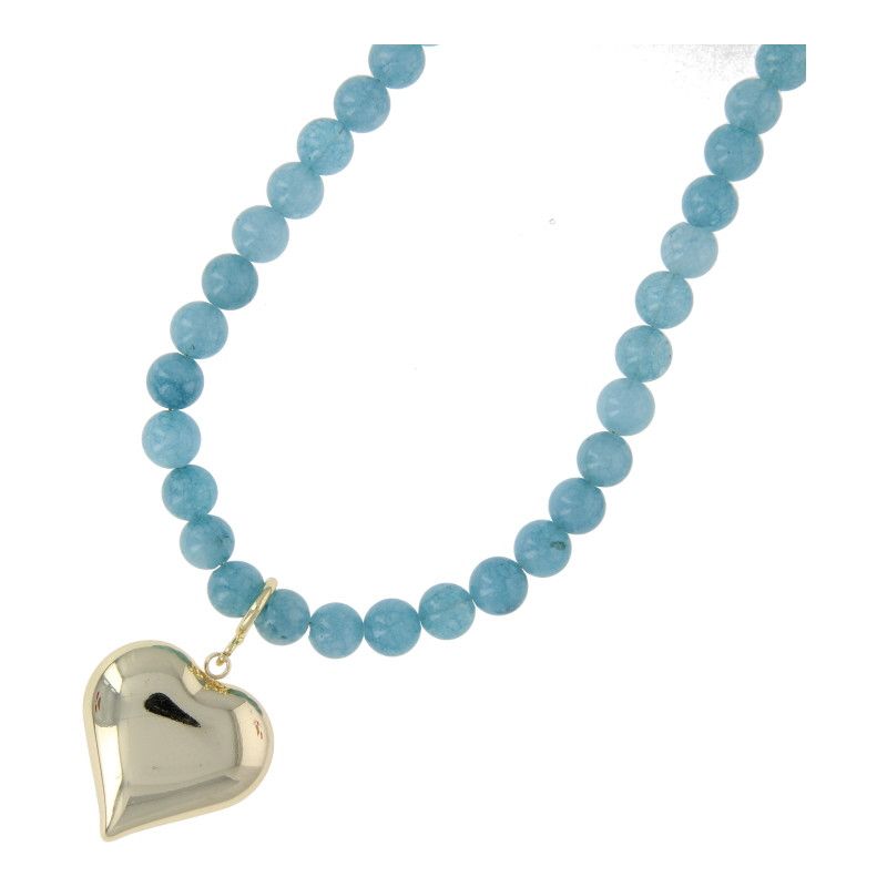 Ketting halfedelsteen 8mm dyed jade lichtblauw met hart