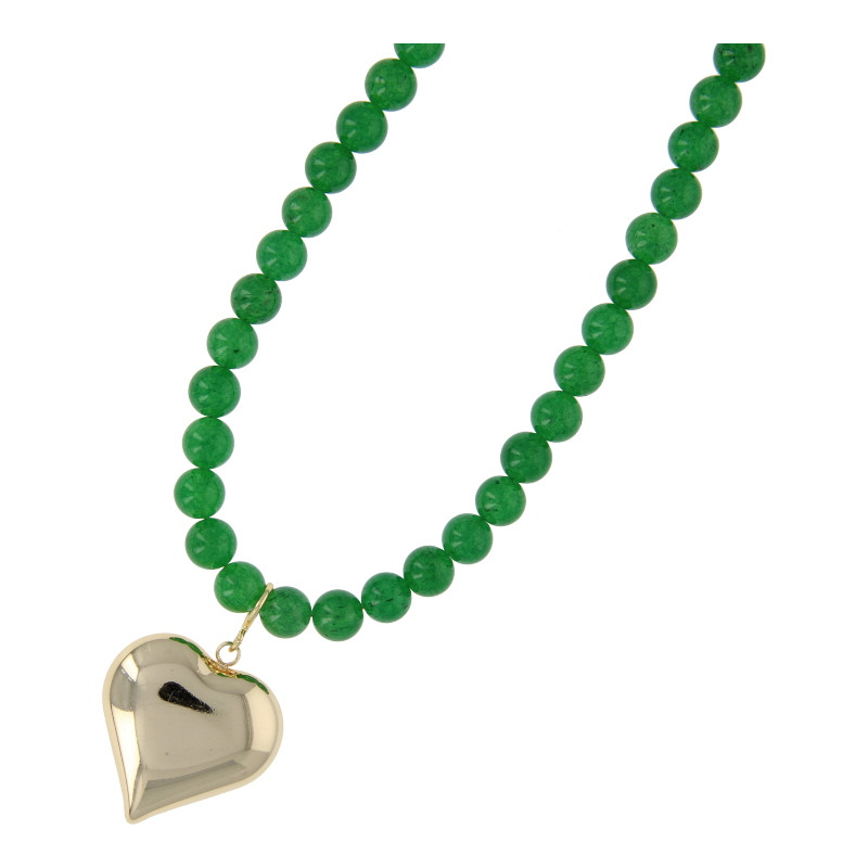 Ketting halfedelsteen 8mm dyed jade groen met hart