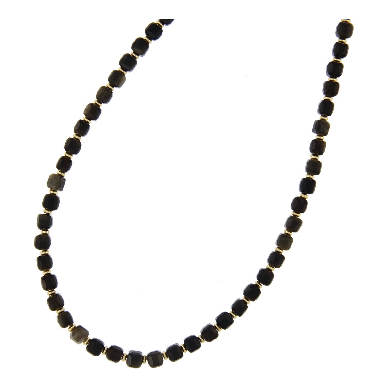 Ketting halfedelsteen 6mm vierkant golden obsidian