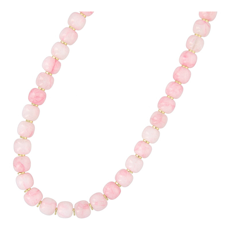 Ketting halfedelsteen tonnetje jade zachtroze en gouden schijfjes