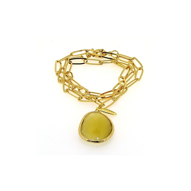 Ketting metaal goud schakel met facetgeslepen ovale glashanger goud