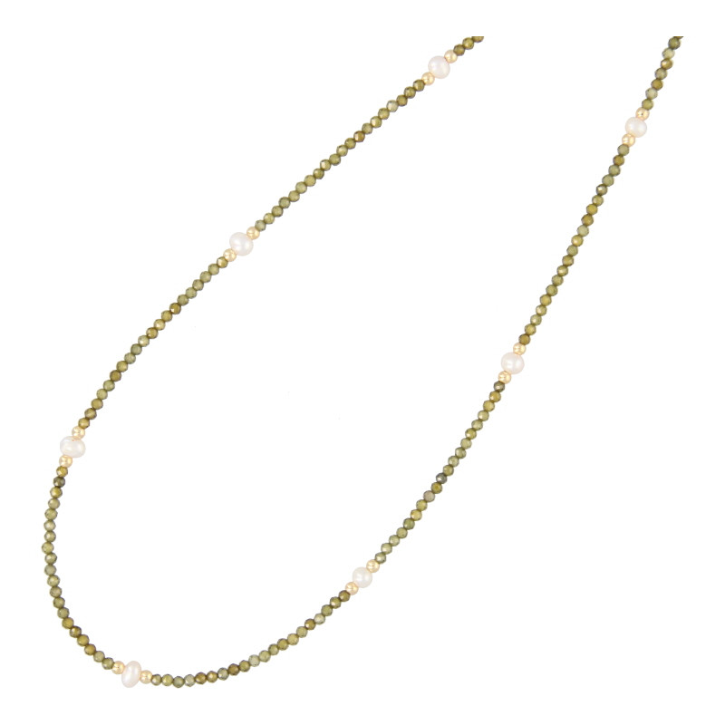 Ketting 2mm halfedelsteen en zoetwaterparels