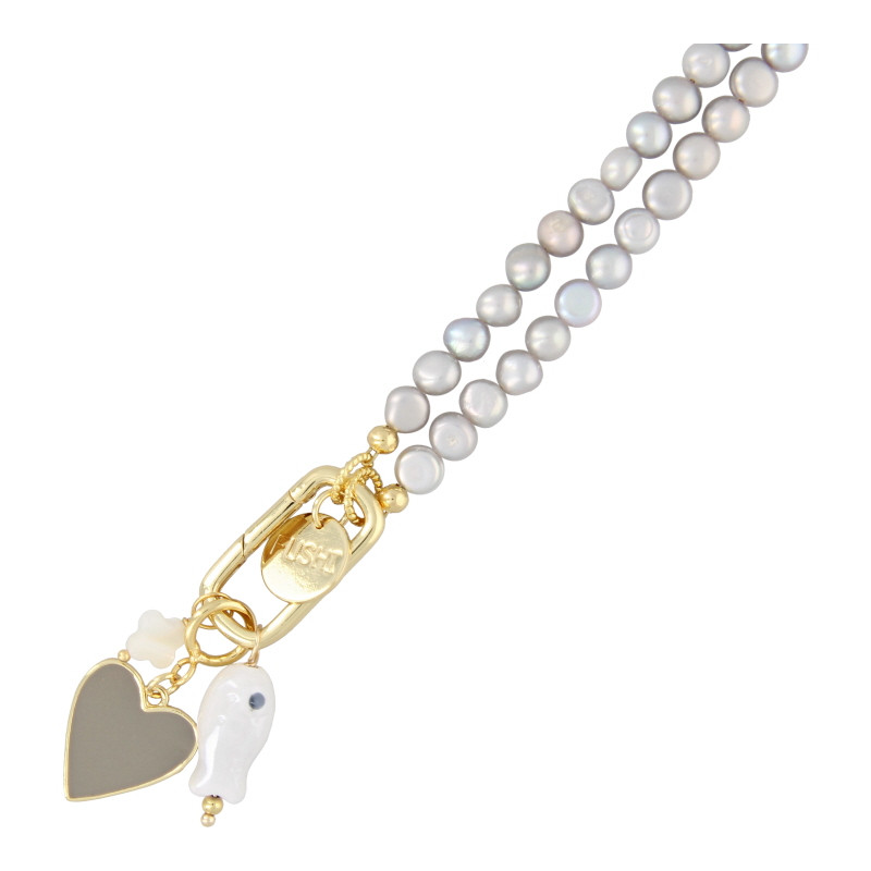 Ketting zoetwaterparel 7-8mm met clipslot en bedels grijs
