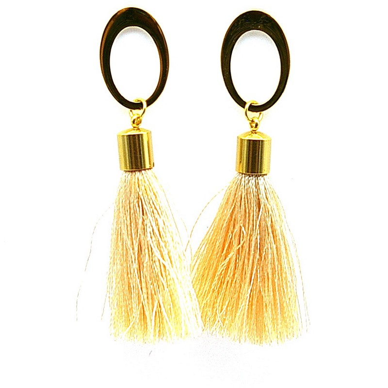 Oorbellen kwast zijdedraad met stainless steel bovenkant