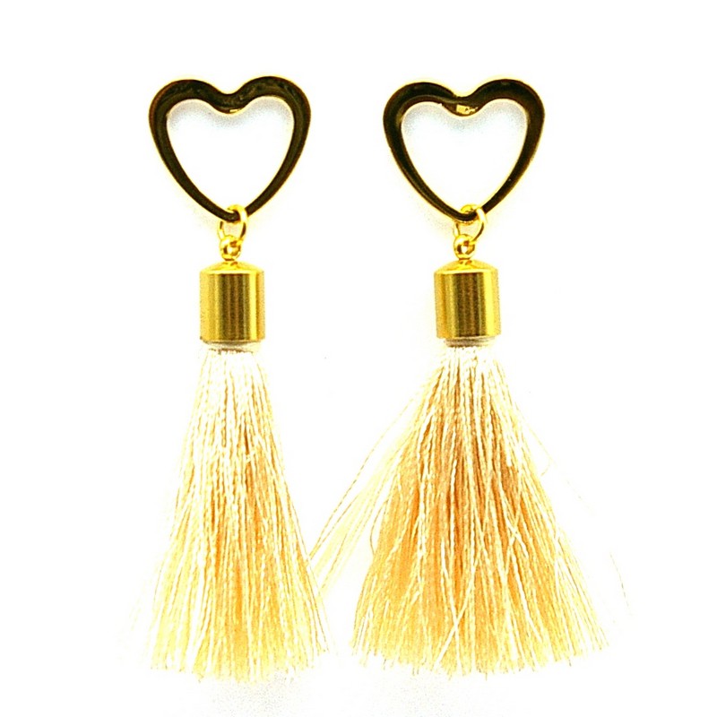 Oorbellen kwast zijdedraad met stainless steel bovenkant