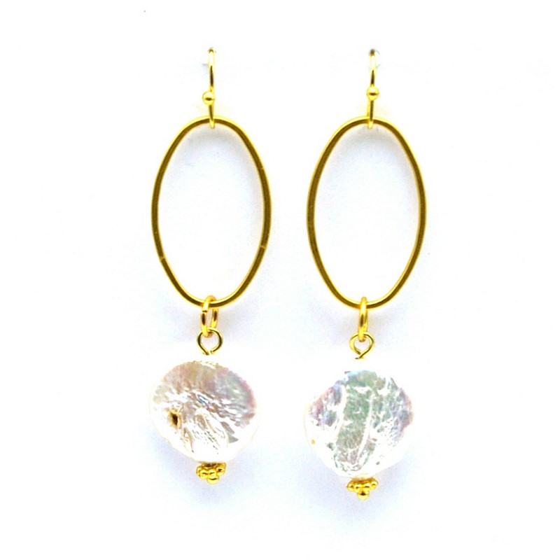 Oorbellen metaal ovaal met zoetwaterparel