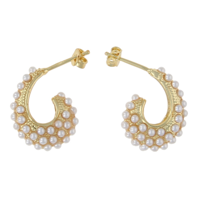 Oorbellen steker krom goud en mini glasparels